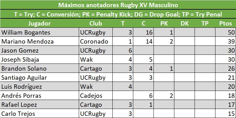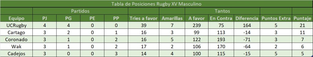 Al final, UCRugby supo sacar ventaja en momentos claves y con ello asegurar una nueva victoria para sus intereses y afianzarse más del liderato en el presente campeonato.